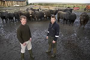 Michael Pottinger (left) and David (right) with some of their Aberdeen-Angus cross cattle at Greenland Mains, Thurso.