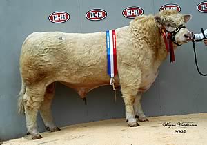 First to hit the 4,000gns mark was the day's supreme champion, Caylers Umbro CH27, a rising two year old by Doonally New and out of a homebred cow going back to Newthrums Regal. Bred by the Barker family who were once again making a highly successful 540 mile round trip from their Nuthampstead, Royston base, Umbro was knocked down sold to John H McIndoe, Rankinston, Ayrshire. Sharing the second 4,000gns bid was Reddings Uriah, a July 2003 born Balthayock Matthew son and out of a Kersknowe sired cow. Uriah, who was placed second in his class, was offered by JS Wilson, of Annan Water, Moffat and went home with RH Gladstone, Thornhill, Dumfries. Next to go at 3,200gns was the Welsh bred Gwenog Utaha CH26, from John Howells, Llanybydder, Ceredigion. Utaha who was unplaced in his class due to the fact John's son, Peter was the event's judge, was by the 18,000gns Derryharney Outstanding and out of a Midlock sired homebred cow. He was knocked down sold to Lincolnshire buyer, John Pridgeon, Keddington, Louth.