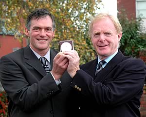 Peter Hetherington, left, receives the Blamire Medal awarded earlier