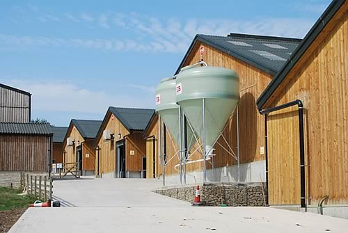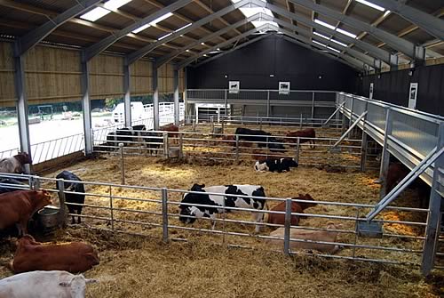 There are purpose-built viewing galleries in all of the four new cattle and three pig buildings, which range in size from the largest at 36m long and 16m wide, to the smallest at 18m long and 8m wide. All of the buildings are 6m high; with the beef buildings having a 22.5 degree pitch to the roof. The cattle buildings have a 2m cantilever on both sides.