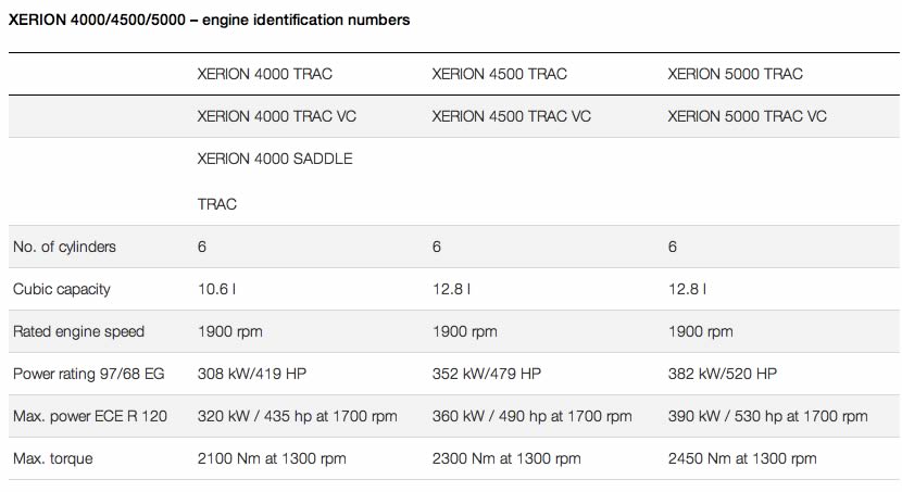 XERION 4000/4500/5000 – engine identification numbers